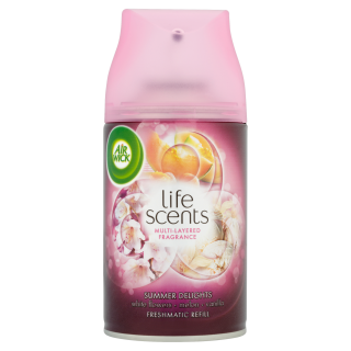 Warning: Please read the safety and precautionary text carefully before use. Keep for future reference. Precautions for use: Before inserting this aerosol refill, check that your automatic device switch is in the off position. Direct the device away from the face before switching on. When it is switched on, the device will automatically spray after 15 seconds. If the gadget light does not flash after 15 seconds, you may need to insert new batteries. For safety reasons, follow carefully the directions for use supplied with your Freshmatic device. Safety/Allergy information: People suffering from perfume sensitivity should be cautious when using this product. Air fresheners do not replace good hygiene practices. Caution: Use only as directed. Keep out of the reach of children. Use only in well ventilated areas. Do not breathe spray. Avoid contact with eyes. In case of contact with eyes, rinse immediately with plenty of water and seek medical advice. Pressurised container. Protect from sunlight and do not expose to temperatures exceeding 50 degrees Celsius. Extremes of temperatures can occur in motor cars and near ovens and fireplaces. Do not place in contact with hot surfaces or naked flames. Do not pierce or burn even after use. Do not spray on a naked flame and incandescent material (e.g. candle) or near any electrical appliance in use (eg. TV). Keep away from sources of ignition. No smoking. If swallowed, seek medical advice immediately and show this container or label. Do not spray onto surfaces. In case of contact with surfaces wipe immediately with a damp cloth. Do not spray on food or fabric.